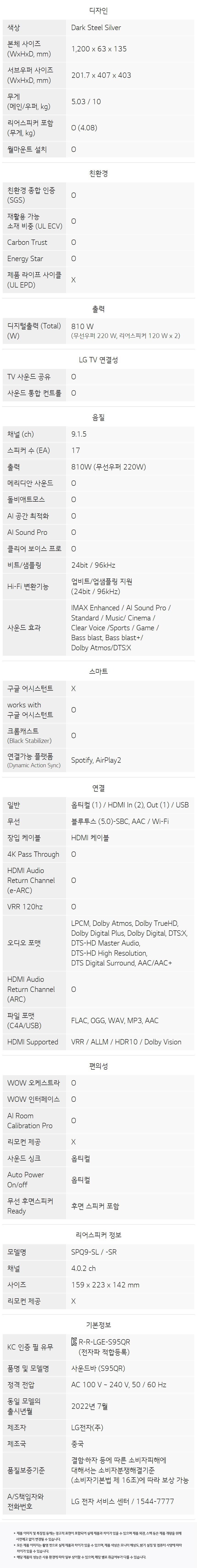 LG 사운드바 (S95QR)